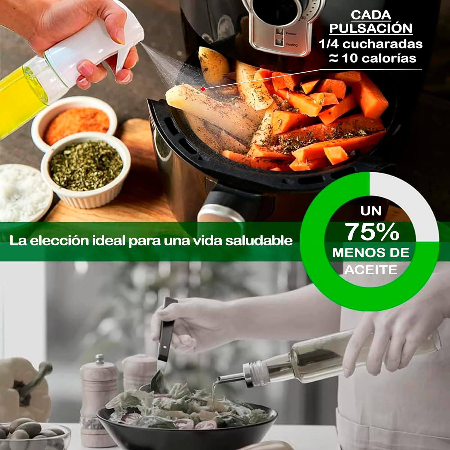 • Llene el pulverizador de aceite con su aceite favorito, vinagre, jugo, vino, etc. Haga el aerosol de manera uniforme, conveniente para asar, hacer, ensalada, hornear, freír, asar a la parrilla, sin usar un cepillo.